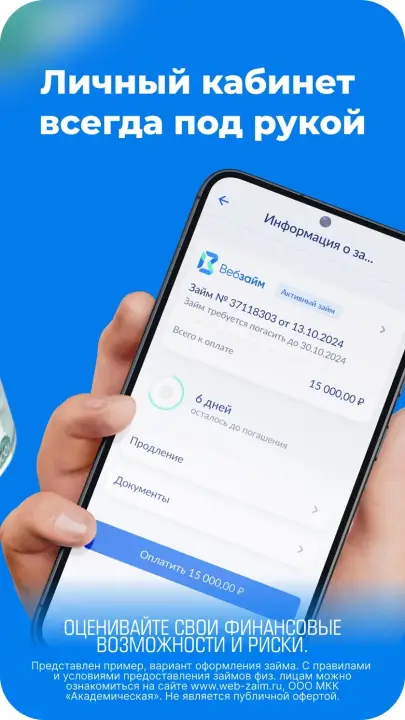 ВебЗайм: займ до 30 000 ₽ на 30 дней, первый — под 0 %. Оформите заявку онлайн за 10 минут и получите деньги на карту.